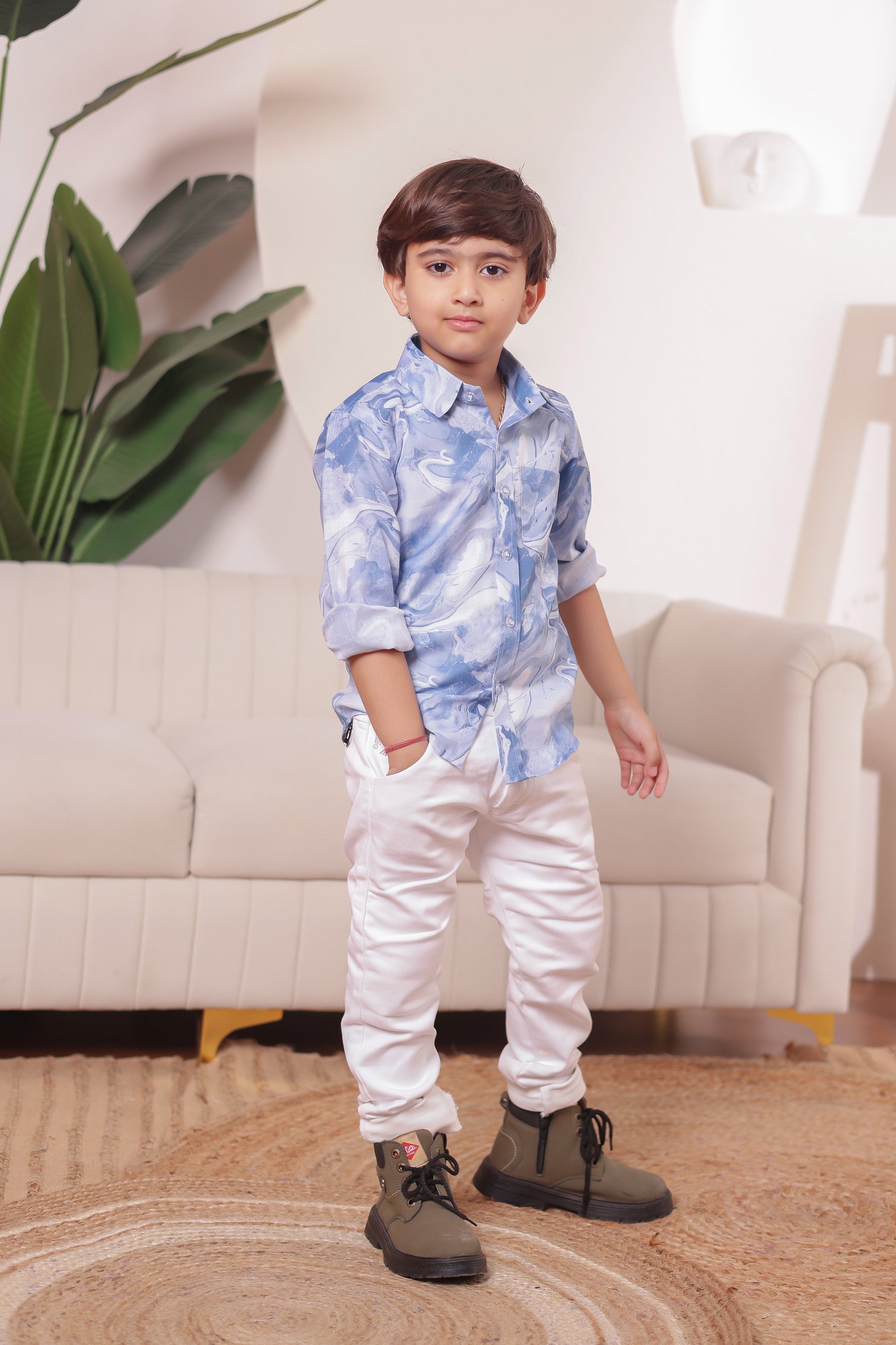 · Men & Boys: Stylish full-sleeve collared shirts paired with crisp white bottoms for a fresh, breezy look.