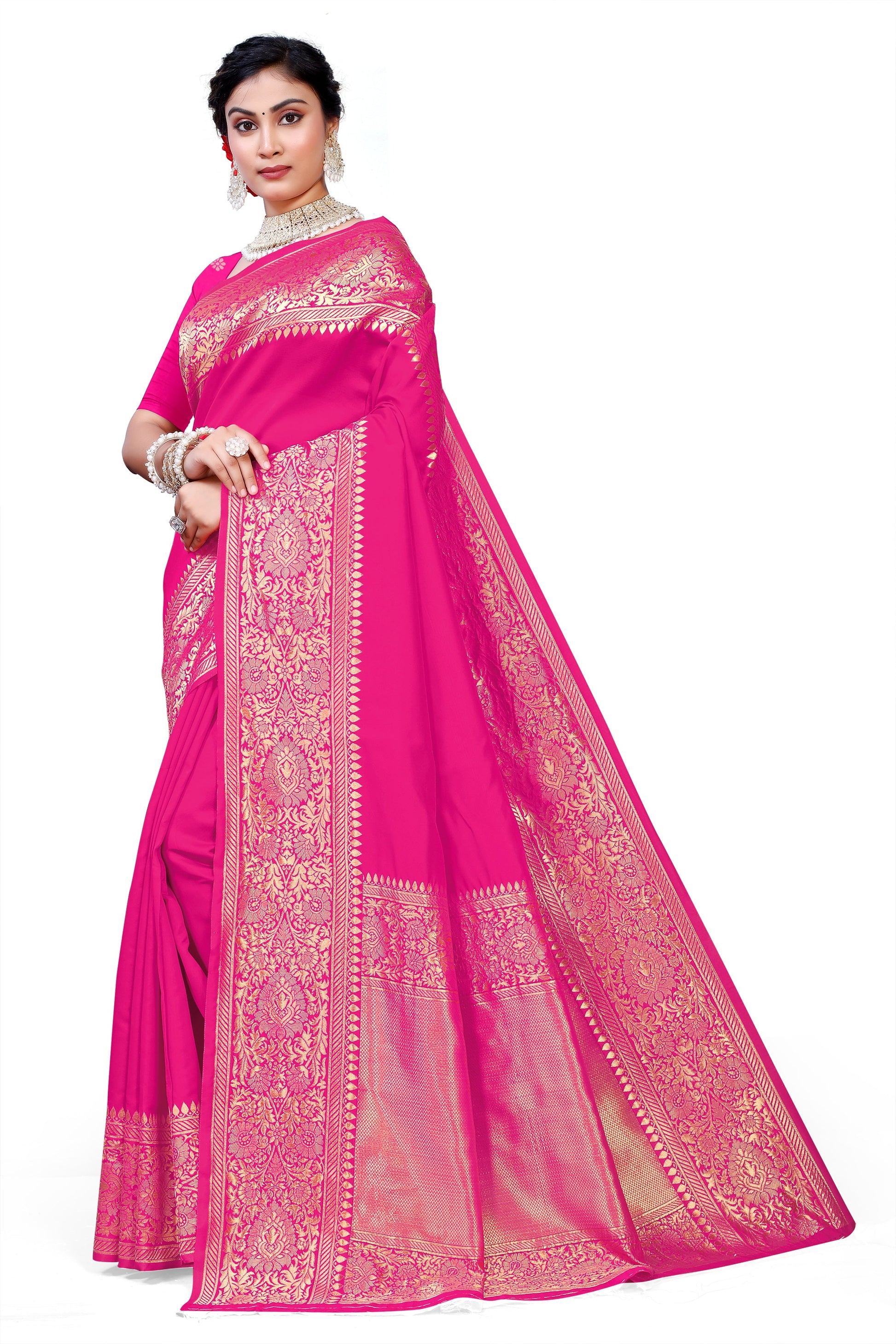 - BLOUSE PIECE: Matching half-sleeve blouse piece included, crafted from the same luxurious silk fabric