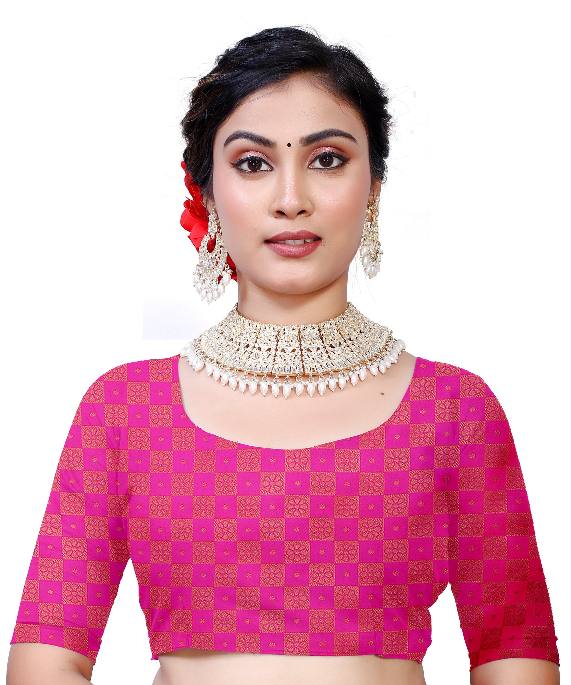 - MATERIAL: Luxurious Kanjivaram Silk Banarasi style saree featuring intricate gold-toned woven patterns throughout the fabric, perfect for traditional occasions